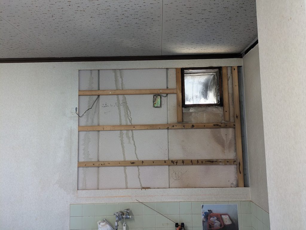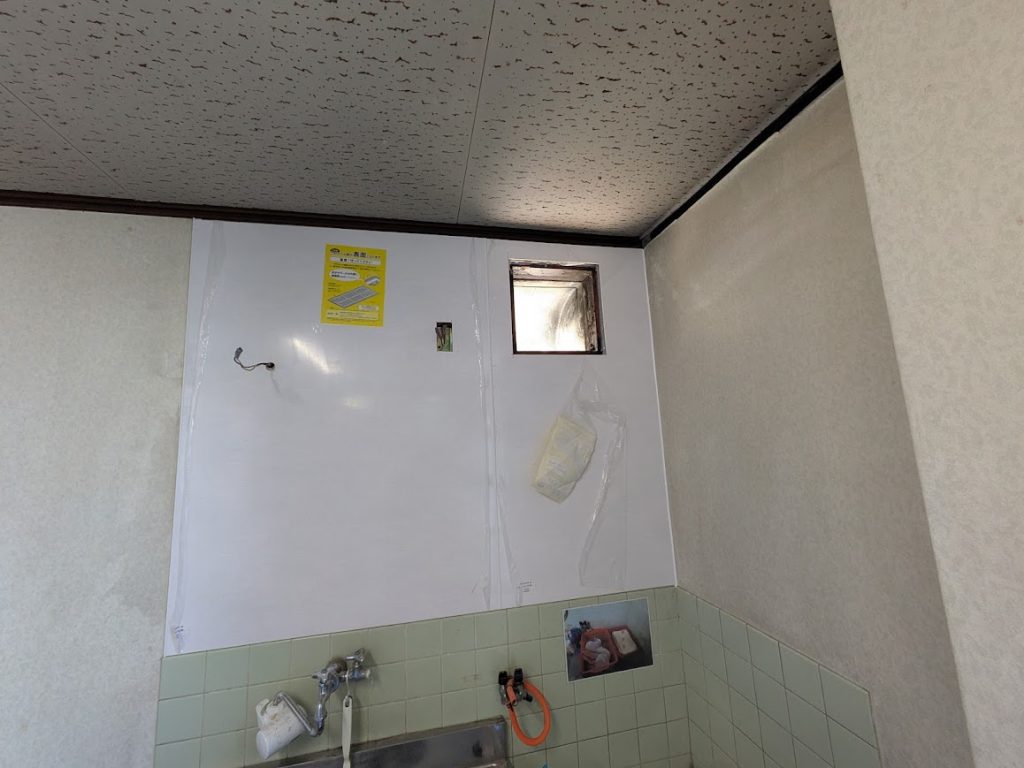 換気扇周りが雨漏りの影響で下地が劣化していたので、これを期に入替え施工を行いました。